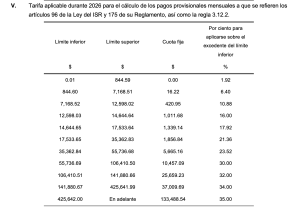 Anexo 8 «Tarifas aplicables a pagos provisionales, retenciones y cálculo del ISR» RMF 2026, se han actualizado con inflación acumuladas de 13.21% DOF 28/12/2025